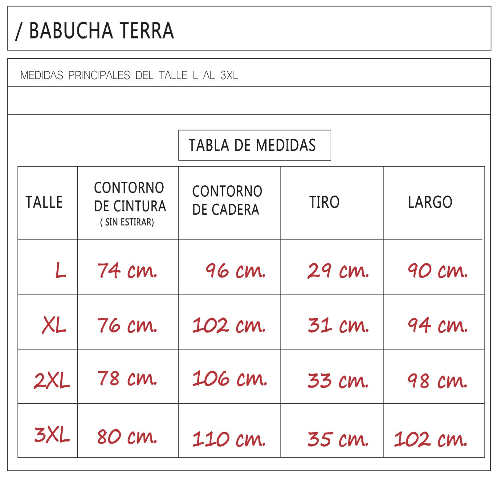 Talles: L / XL / XXL / 3XL.