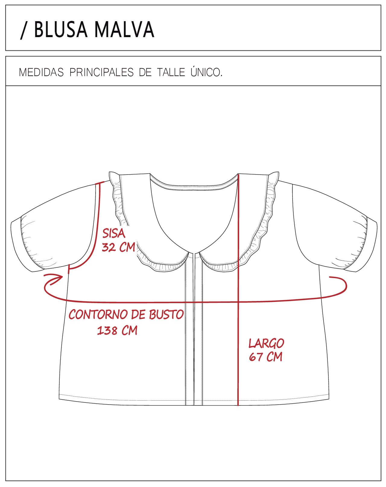 Contorno de Busto: 138 cm.
