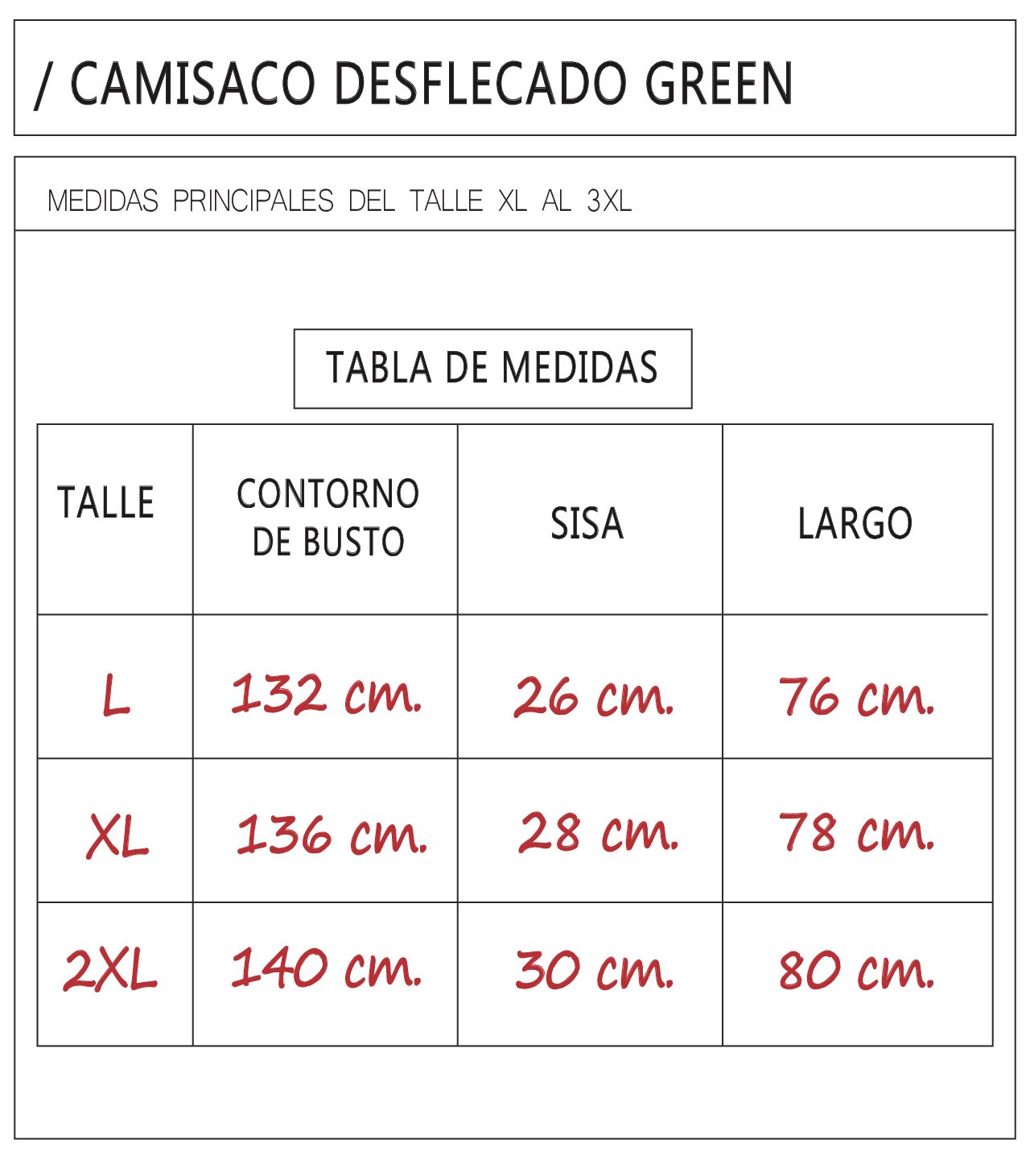 Talles: L / XL / XXL.
