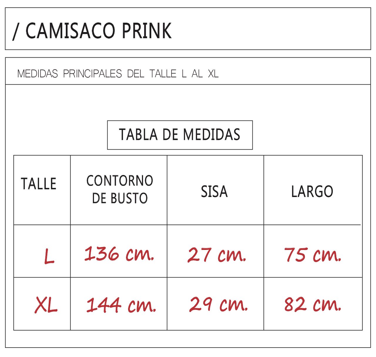 Talles: L / XL.