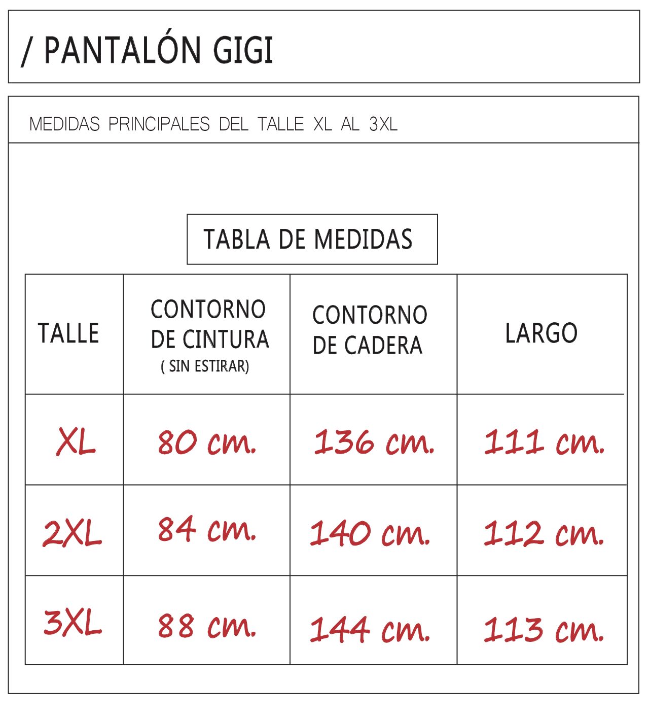 Talles: XL / XXL / 3XL.