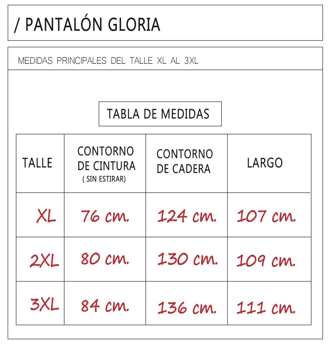 Talles: XL / XXL / XXXL.